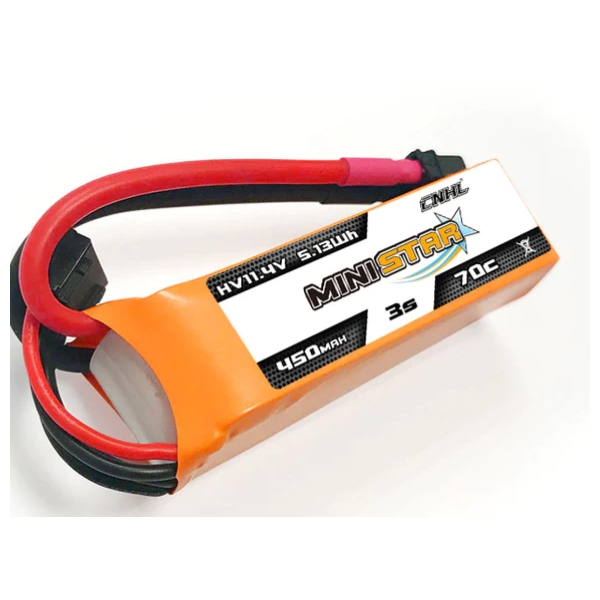 CNHL 3S lipo battery 11.4V 450mAh with 70C discharge rate offers you very high power and very long run time lipo battery for FPV, DRONE, BABYHAWK, tiny hawk, Drone Kit, RTF. They are widely fit Multi-Rotor FPV from Size(1-5mm difference) 90 to 180 Torrent 110 Lizard 95 Warbirds Eflite Blade Brushless Micro Drone FPV Racing Drone.
